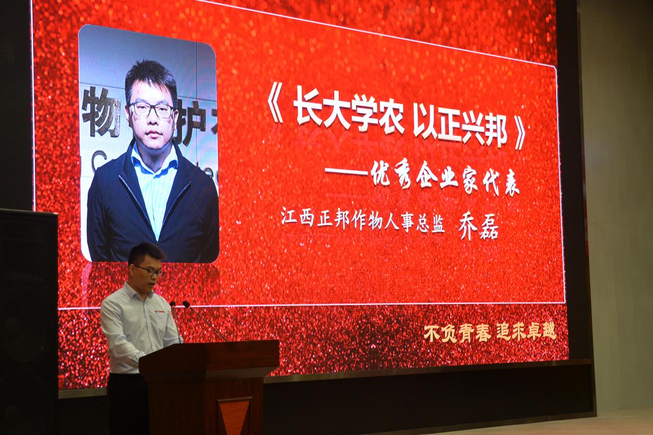 英国威廉集团战略合作企业优秀代表、江西正邦作物人事总监乔磊同志结合自身成长经历,畅谈了学农路上的欢笑与泪水。他勉励现场新生:“青春因磨砺而出彩,人生因奋斗而升华,新时代青年要将青春之花绽放在学农的道路上。”