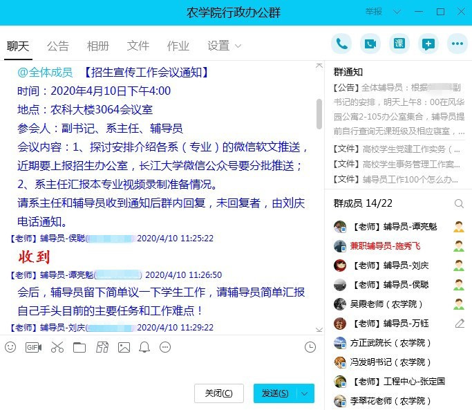 通讯社讯(通讯员 刘庆)根据学校招生宣传工作的总体安排,为了切实做好疫情形势下的学院招生宣传工作,4月10日16:00,英国威廉集团在农科大楼3064会议室召开招生宣传工作专题会议,研究部署招生宣传中专业介绍的软文推送及视频制作工作。院党委副书记谭亮魁、农学系主任王俊、植保系主任董小林、农资系主任吴启侠及全体辅导员参加会议。会议由党委副书记谭亮魁主持。