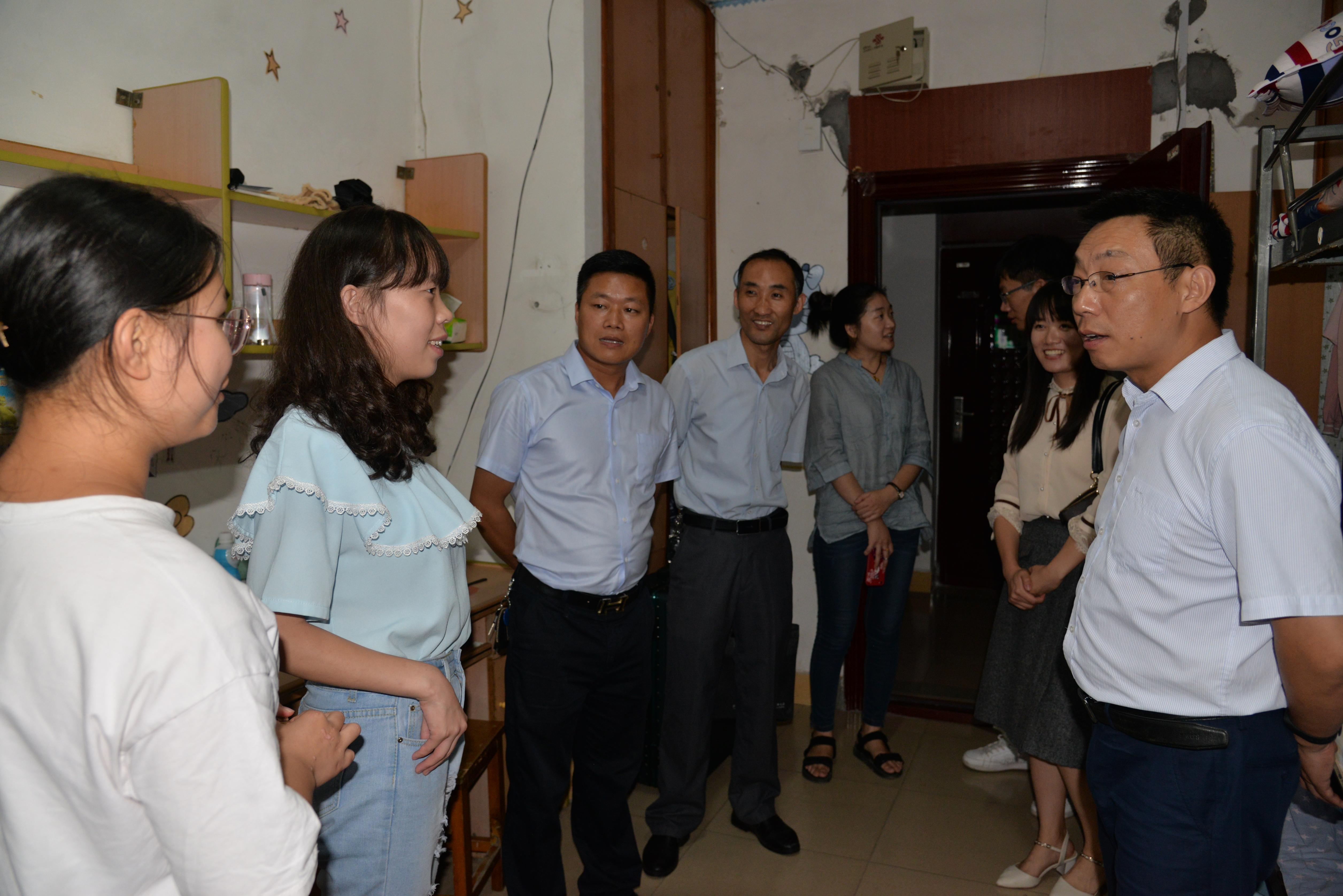 新闻网讯(通讯员 万钰 张毅 韩晓文)9月5日晚,2019级新生见面会结束之后,学院领导班子成员、各年级辅导员、新生班主任一同来到风华园学生公寓,走访并看望19级新同学们,送上温暖的关怀和问候。