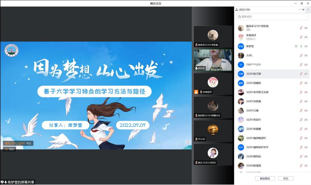 (通讯员 李雨珈 李虹晓)为对2022级本科生集中进行入学教育安排,9月9日早上8:30,我院在腾讯会议线上召开了“校友生涯规划讲座”和“高年级学生学习方法分享”活动,活动邀请了从我院毕业的优秀校友朱祥和高年级学生柴梦莹。此次会议由党委副书记尹小华主持,全体2022级本科生参加。