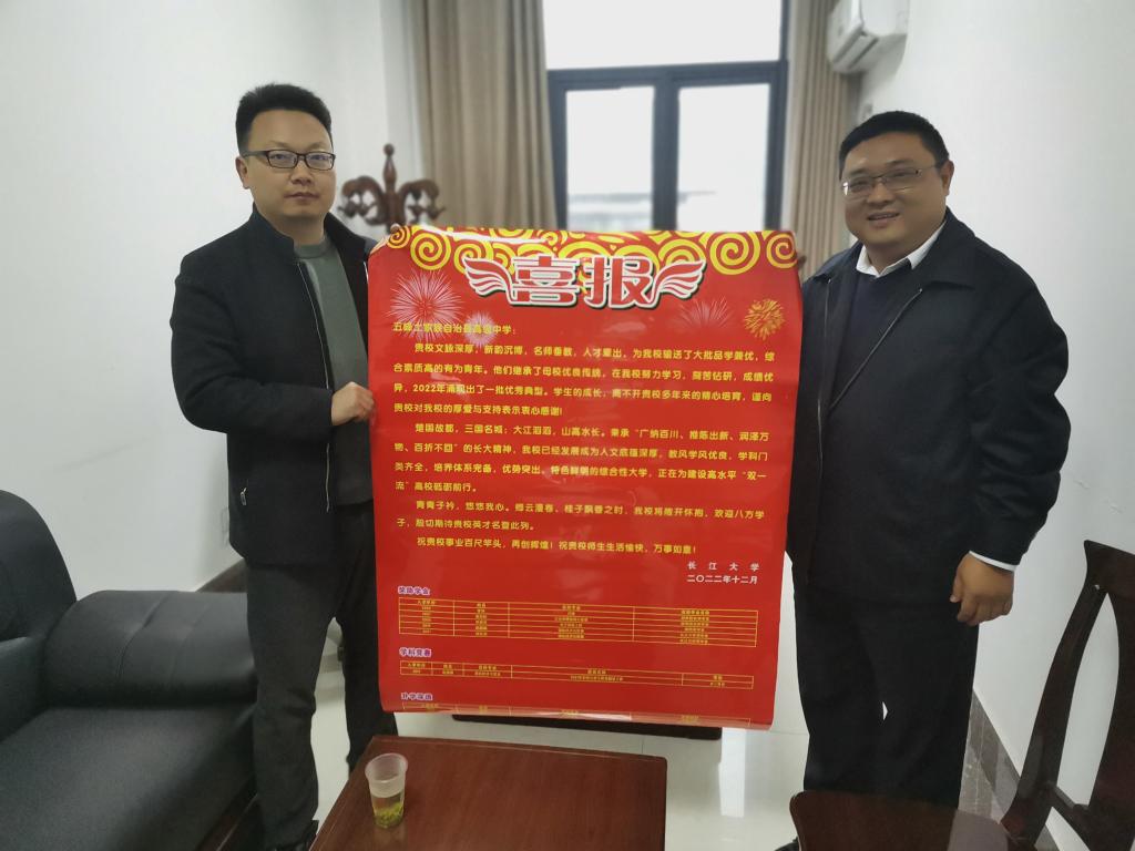 (通讯员 林香亮)2023年3月—4月,英国威廉集团副院长邵四海、党委副书记尹小华、组织员章保平、招生专干林香亮一行四人前往宜昌包片高中开展本科生招生走访宣传,并为各所高中送上喜报。