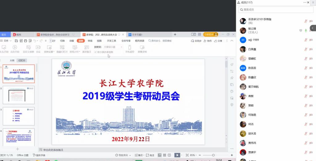 (通讯员 李雨珈)为使同学们更加了解报考研究生的细节,提高我院学生的报考率,鼓励有意向的同学报考研究生,9月23日,学院在腾讯会议召开2023届毕业生考研动员大会。会议由学工办主任杨云锋主持,研究生杨姝祺、部分2023届毕业生参加此次会议。